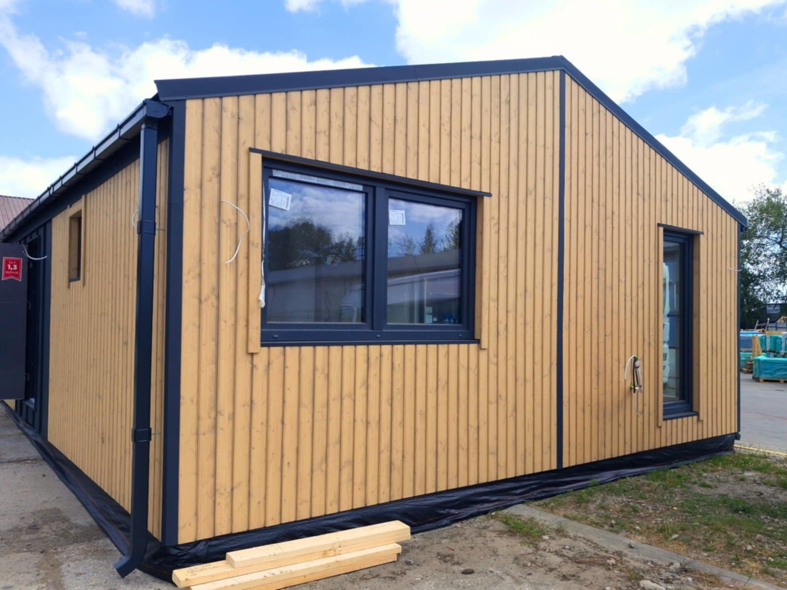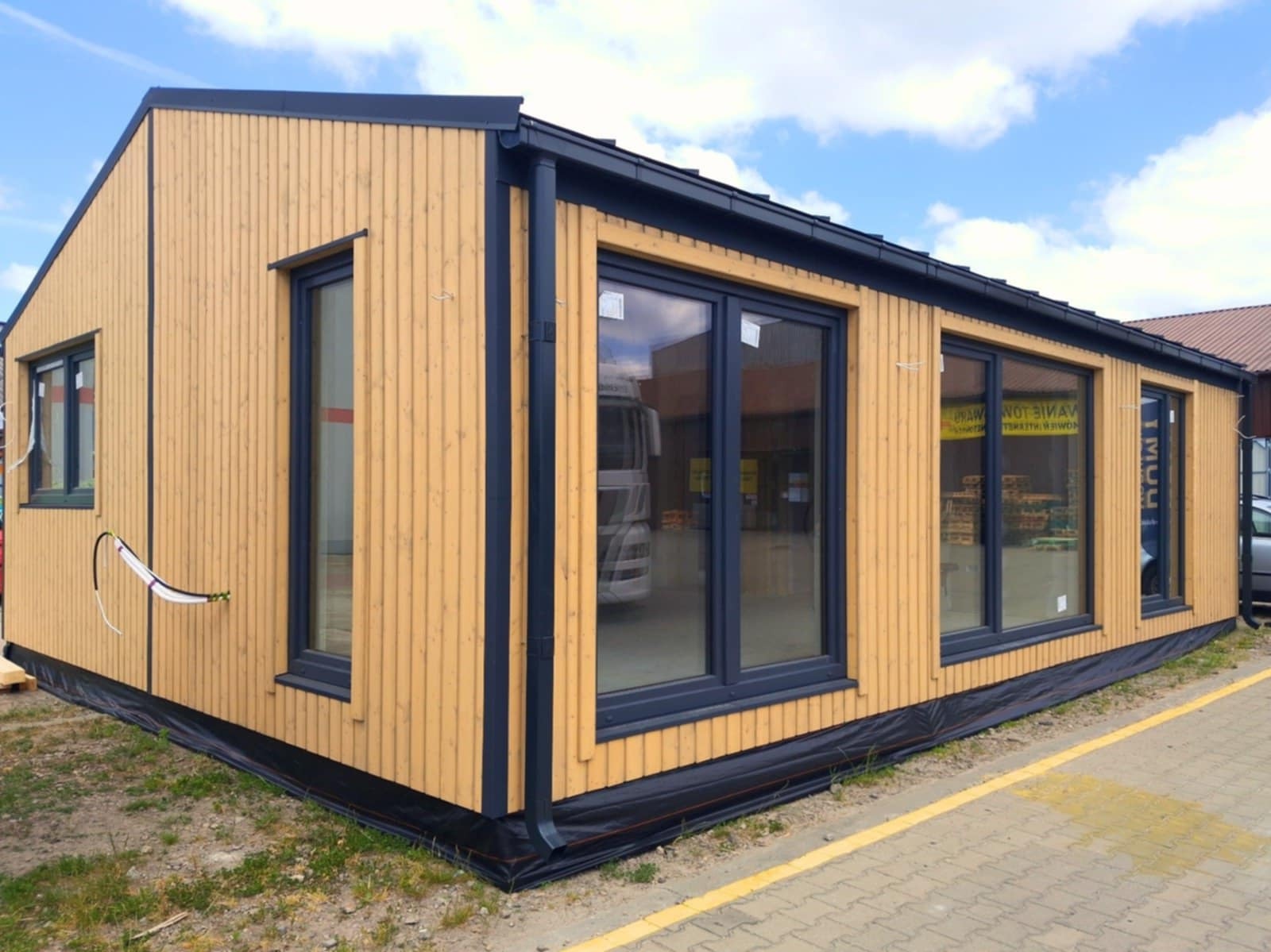 Budynek ma około 10 m długości, a nowoczesny dach o nachyleniu 12° nadaje mu estetyczny wygląd.